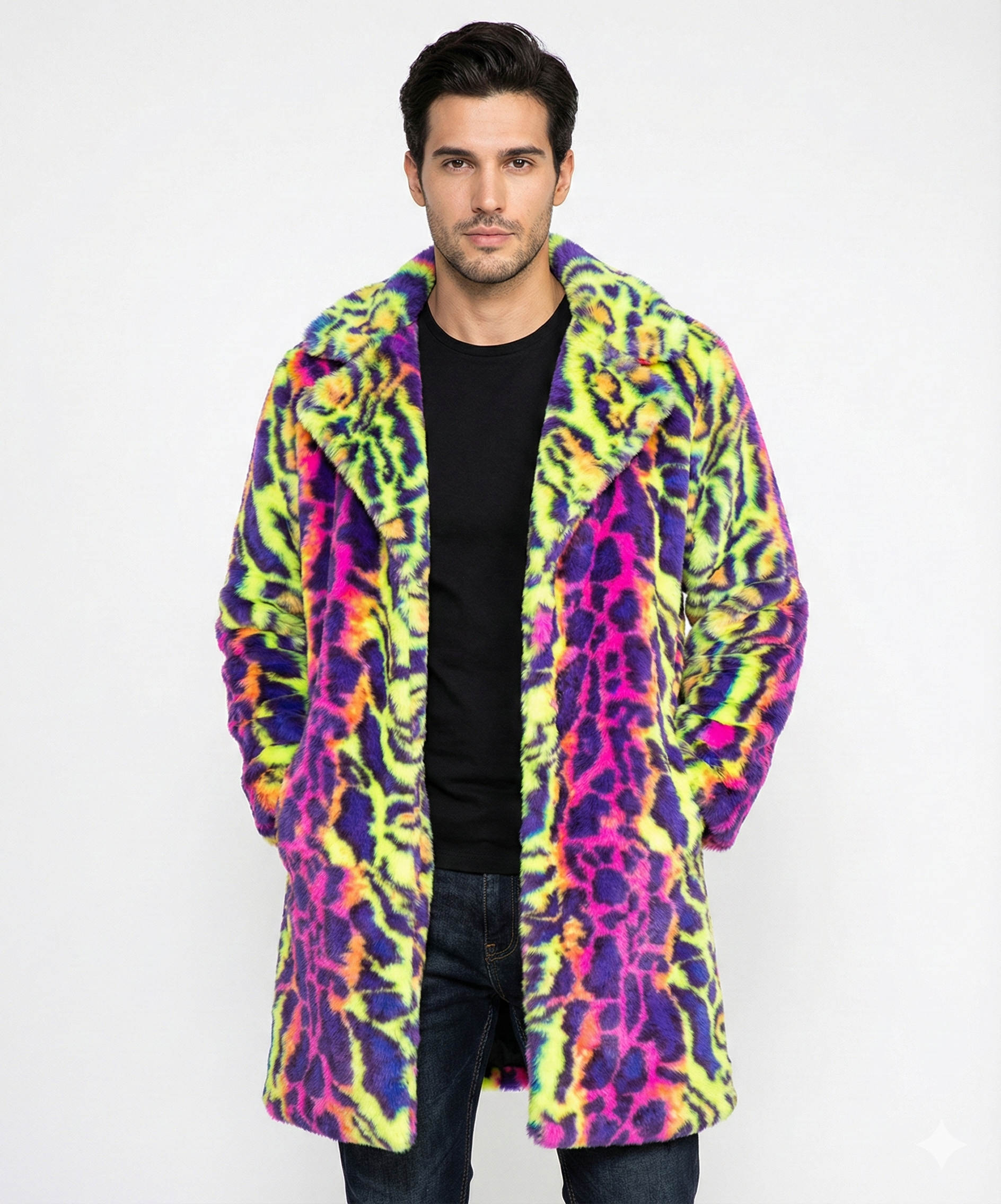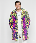 ג’קט נמר סגול עם נוכחות שאי-אפשר להתעלם ממנה — חם, בועט ומושך מבטים, מושלם לרחבת הטכנו וללילות שלא שוכחים.